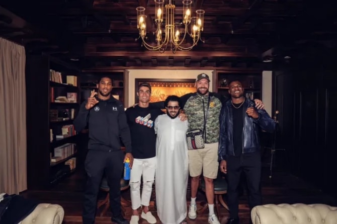 Among those in the photograph are Al Nassr’s Cristiano Ronaldo, Ngannou, and Turki Alalshikh.