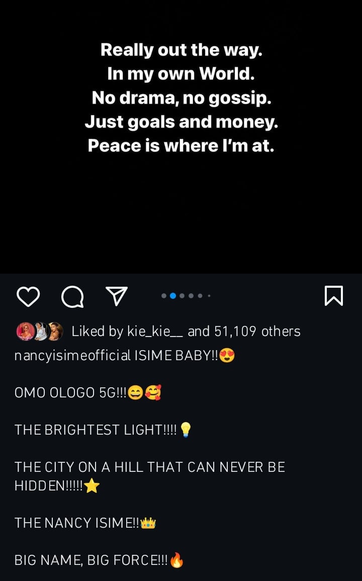 In response, Nancy posted new photos on Instagram with captions highlighting her focus on peace and personal goals.