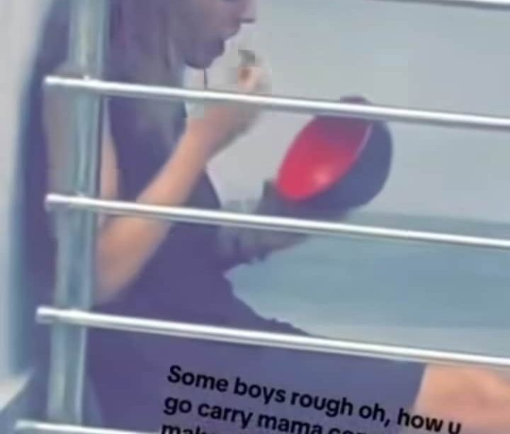 Mixed reactions have trailed a video of a Caucasian lady who was spotted sitting on the balcony drinking garri.