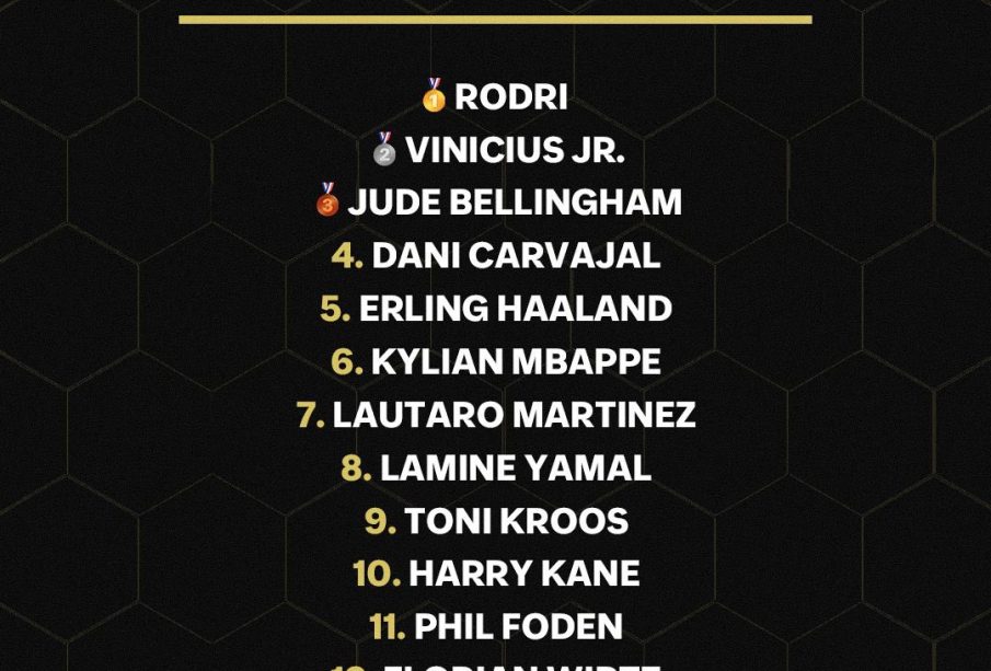 Ballon d’Or 2024 final rankings – Rodri leads charge in 15-man shortlist