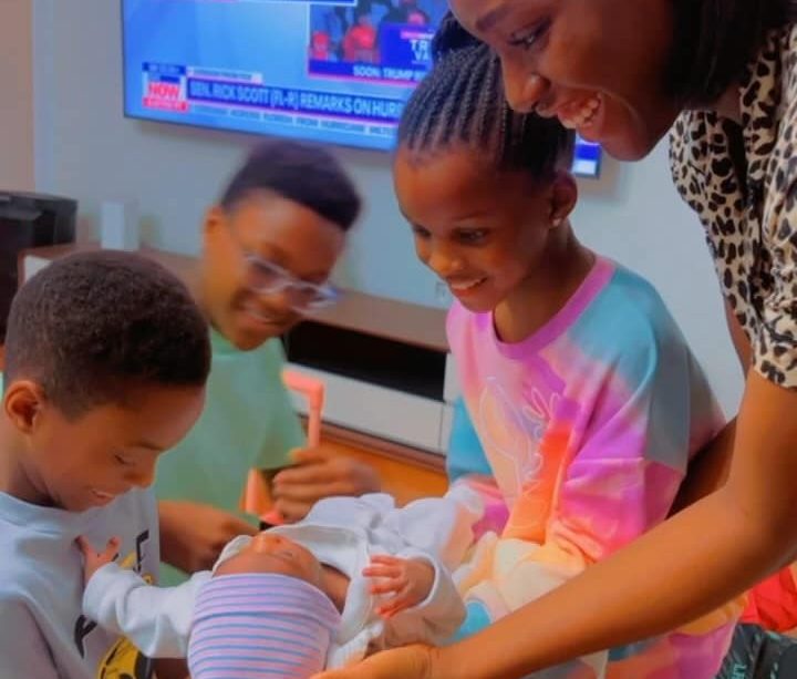Anita Okoya hailed as Paul introduces their children to Ivy’s newborn baby