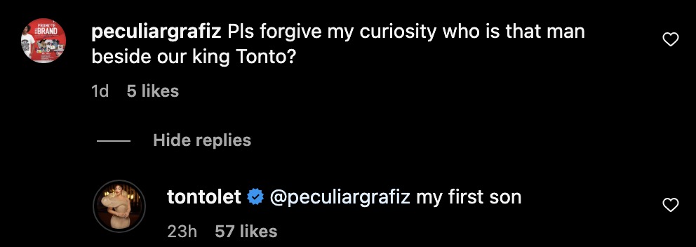 Addressing one curious fan who asked about the man, Tonto clarified: