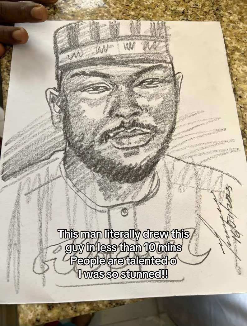 In a video shared by TikTok user @emem_maa, the artist was spotted working on a sketch of a man seated in a small kiosk.