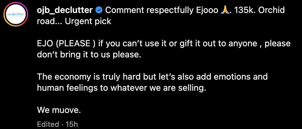 The listing was shared by Instagram vendor @ojb_declutter, a platform known for helping individuals sell pre-owned items.