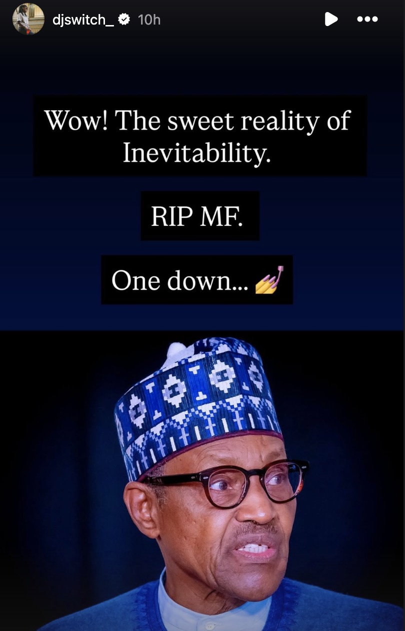 In a post shared via her Instagram story shortly after the announcement of Buhari’s demise, DJ Switch wrote: