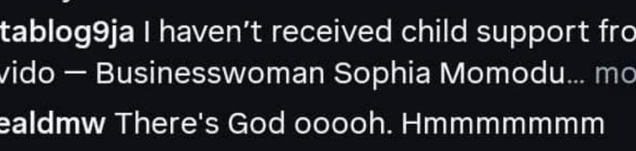 Reacting to a popular blog post about Sophia’s statement, Israel DMW dropped a cryptic comment: “There’s God o. Hmmmm.”