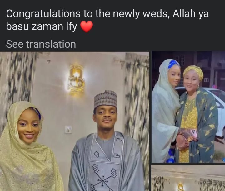 Her post reads, “Allahumma Barik my baby khadija married her fiancé of 5yrs lieutenant A.m yareema, five years of love .Congratulations to the newly weds, Allah ya basu zaman lfy ”.