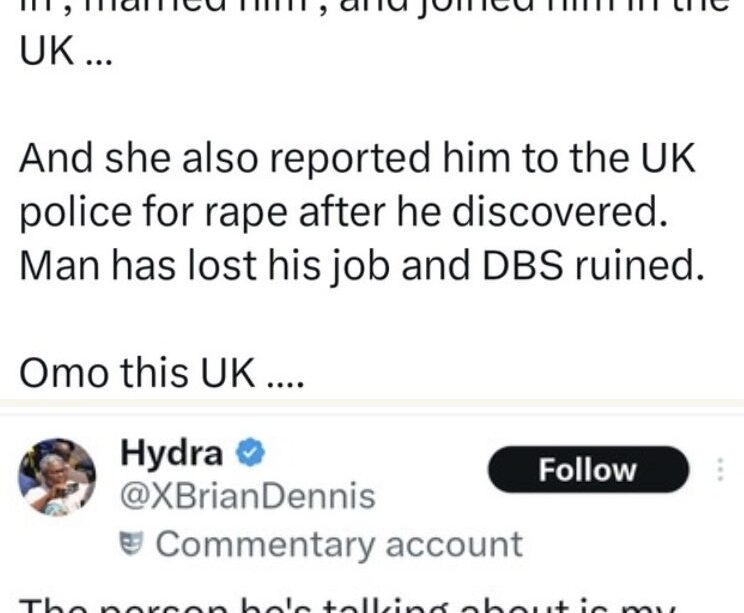 @Stifler wrote: “A guy in my DM discovered his dependent wife gave birth to their baby but after DNA test… He is not the father. The real father is in Nigeria, she took in, married him, and joined him in the UK…