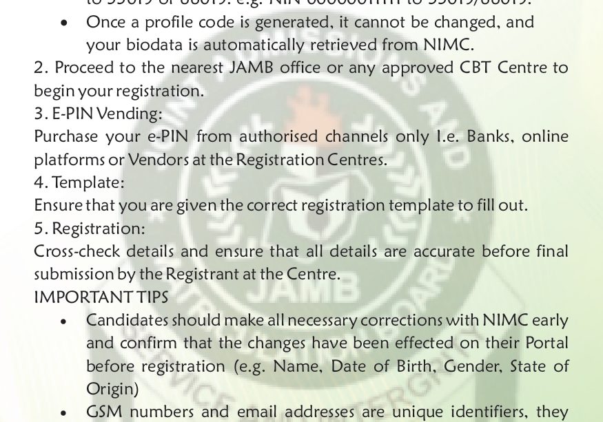 Candidates are also urged to regularly monitor the official JAMB portal and social media accounts for updates regarding registration deadlines, examination schedules, and any procedural changes.