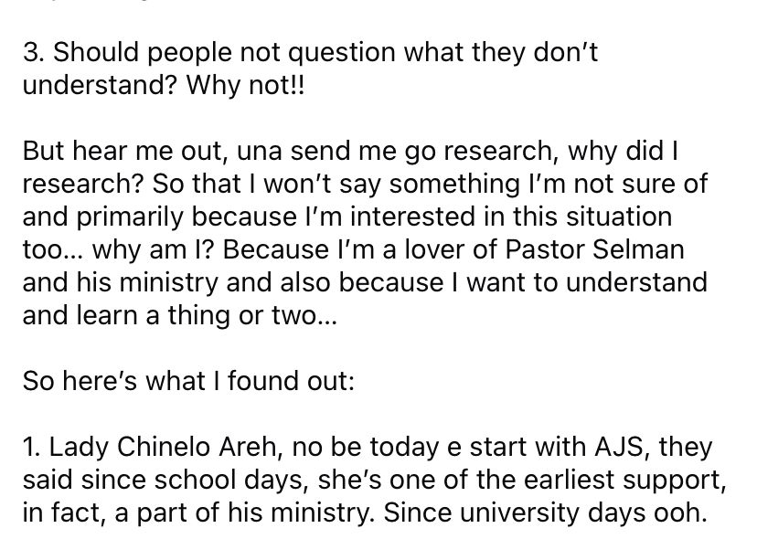 Lady Chinelo Areh, no be today e start with AJS, they said since school days, she’s one of the earliest support, in fact, a part of his ministry. Since university days ooh.