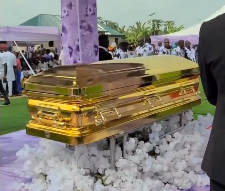Tongues have, however, wagged as many were held spellbound by the gold-plated casket which was reported to have cost millions of Naira.