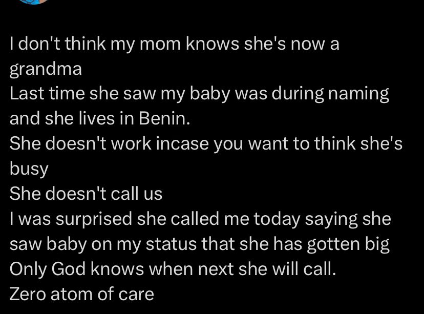 The new mum, @neetahworld took to X (formerly Twitter) to share her frustration, saying her mother has failed to step into her role as a grandmother since she gave birth.