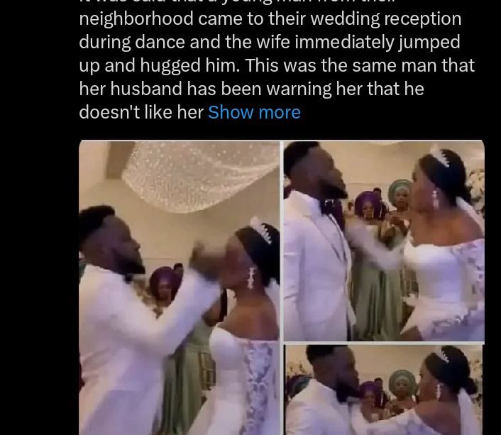 Drama as bride hugs male guest, groom loses temper at wedding reception