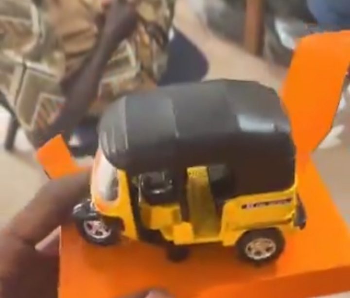 The video captures a man showing off the diminutive keke Napep while mocking the man who purchased the item online.