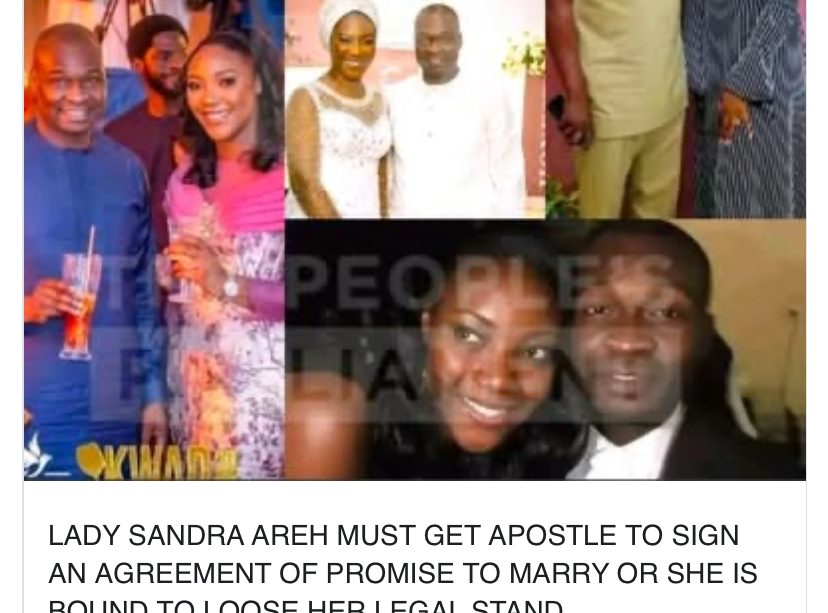 “LADY SANDRA AREH MUST GET APOSTLE TO SIGN AN AGREEMENT OF PROMISE TO MARRY OR SHE IS BOUND TO LOOSE HER LEGAL STAND.