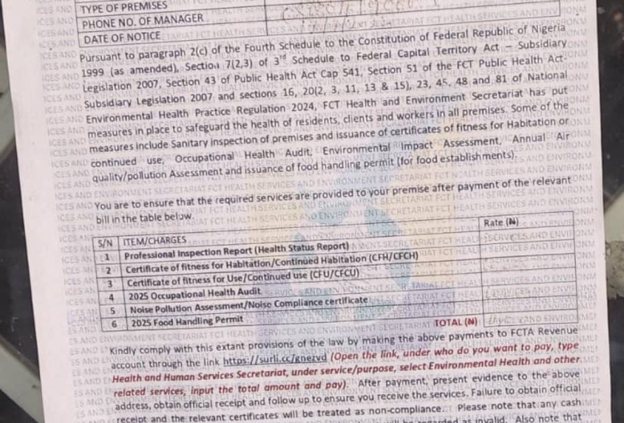 The notice, recently displayed at a business office in Zone 11, FCT, signals the government’s intention to regulate noise levels caused by private power generation.