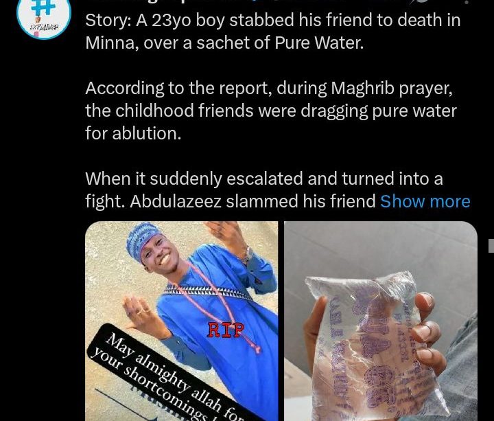 The shocking incident has ignited discussions across online platforms, with many Nigerians expressing disbelief at how a simple argument over water could escalate into a fatal stabbing.