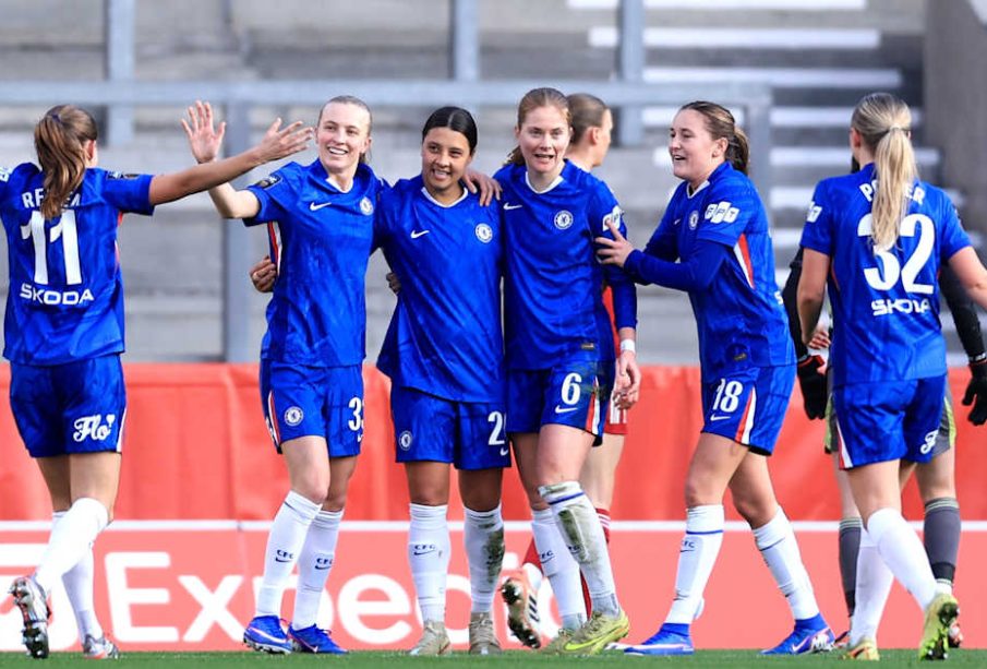 Chelsea took the lead after 13 minutes when Niamh Charles’ low delivery found Kerr, who darted across her marker to finish clinically at the near post.