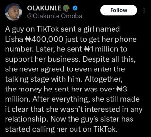 Lady rejects talking stage with man despite ₦1 million business support