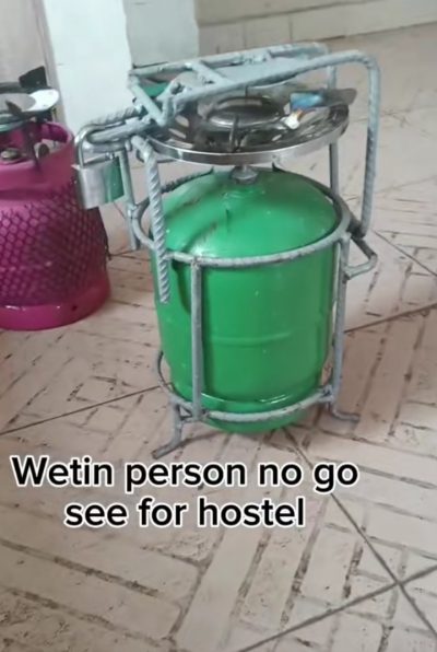 Student takes serious measures to secure gas cylinder as he returns to hostel