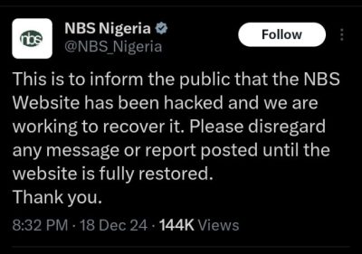 GistReel The National Bureau of Statistics (NBS), has reported a hack on its official website. ... -