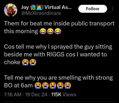 GistReel A lady, identified simply as Joy, has taken to her X page to narrate ... -