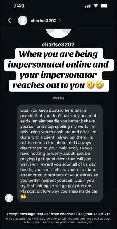 GistReel Nigerian model Alex Adekwe has shared a shocking encounter with an impersonator who has ...