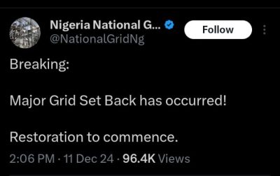 GistReel The National Grid, has suffered yet another collapse, making it its 12th collapse in ... -