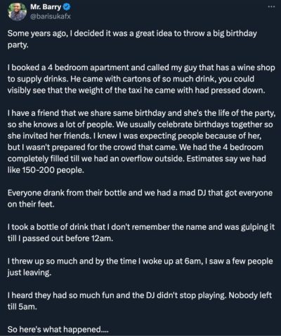 GistReel A Nigerian man shares a hilarious yet painful experience of hosting the biggest birthday ...