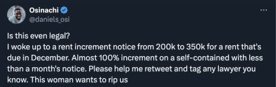 GistReel A Nigerian tenant’s shocking rent hike has sparked heated reactions on social media, highlighting ... -