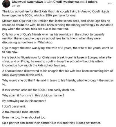 GistReel A Europe-based Nigerian man is left heartbroken after discovering that his wife inflated their ... -