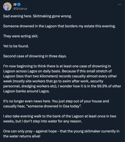 GistReel A skitmaking attempt allegedly took a tragic turn in Lagos as a young skit ... -