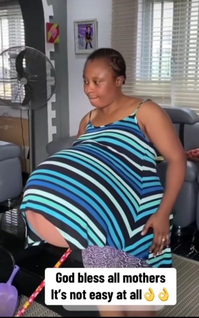 Pregnant lady shows off her huge baby bump, video stirs shock