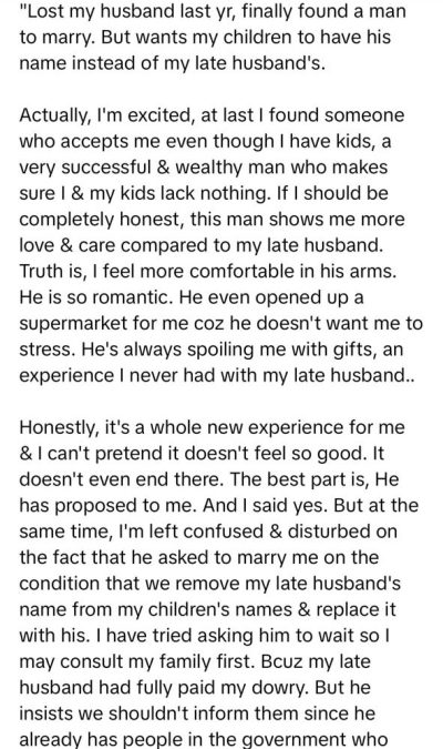 GistReel An embattled mother of three seeks advice after her new partner insists on yanking ... -