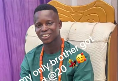 Man rejoices as his brother weds at age 20, flaunts wedding video