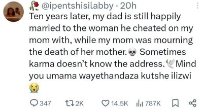 GistReel A South African lady condemns karma for allowing her father to maintain 10 years ... -