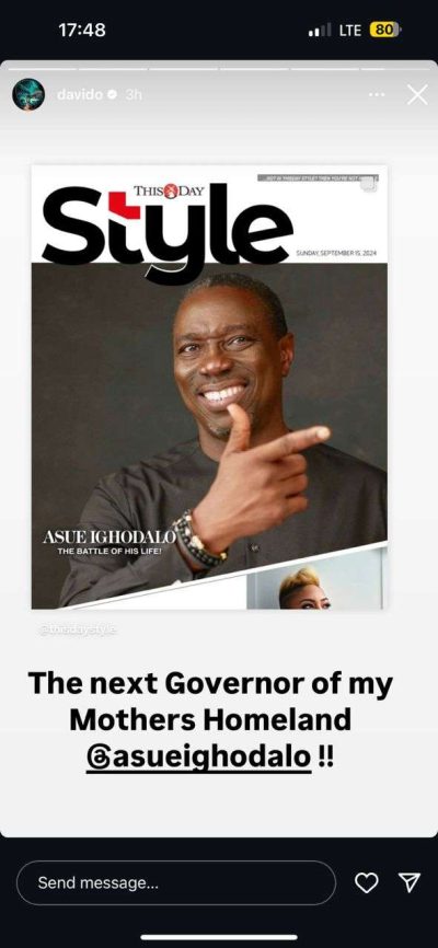 Davido backs PDP candidate, Ighodalo for Edo governorship race