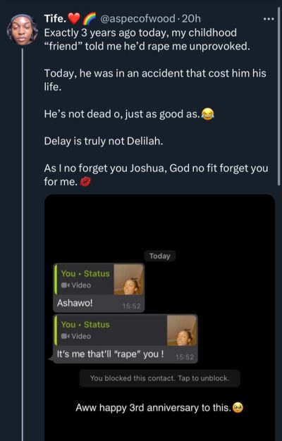 GistReel A young lady hails ‘karma’ following a ghastly accident that rendered her childhood friend ... -
