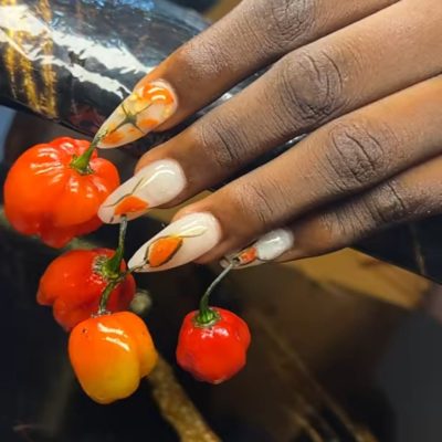 Nigerian lady takes fashion to new heights with pepper and salt nails