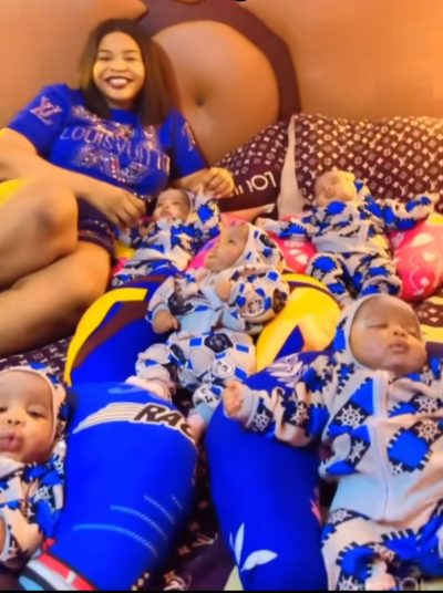 GistReel A Nigerian woman, Chidimma Amaechi brims with happiness as she shows off her quintuplets, ... -