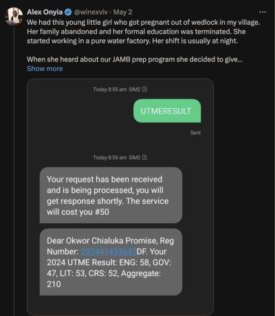 2024 UTME: Result of abandoned student who got pregnant out of wedlock surfaces
