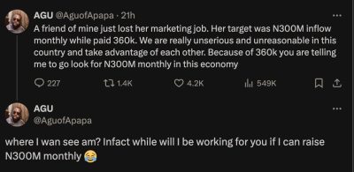 GistReel A Nigerian marketing expert earning a salary of N360K reportedly loses her job for ... -