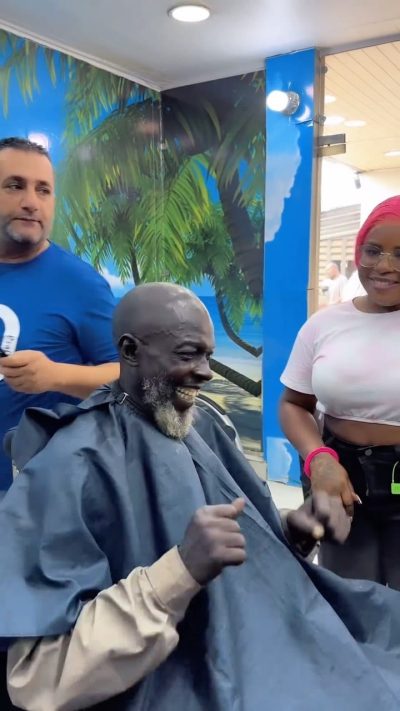 Mr Ibu’s adopted daughter Jasmine, puts smiles on face of homeless man, transforms him