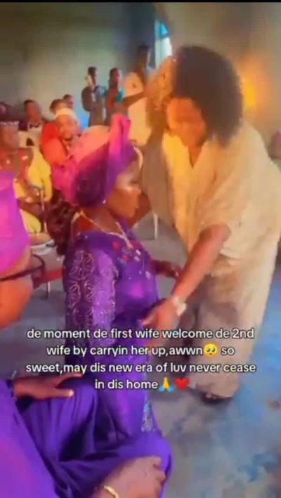 “She’s not happy” – Reactions trail video of a lady welcoming her husband’s second wife ...