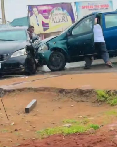“You go jam timberland boys” – Commotion ensues as motorist collides into Lexus