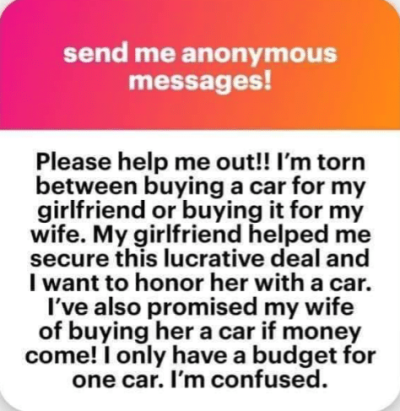 “Who should I give? – Man cries out over whom to gift a car between ...