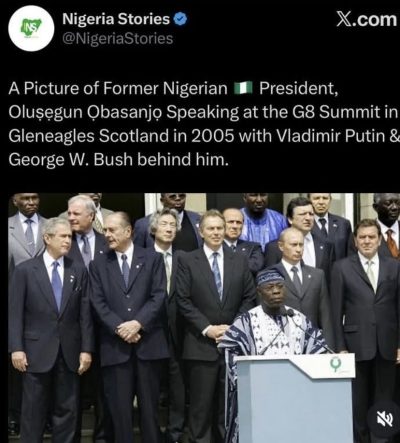 GistReel An old photo of former Nigerian President Olusegun Obasanjo speaking at the 2005 G8 ... -